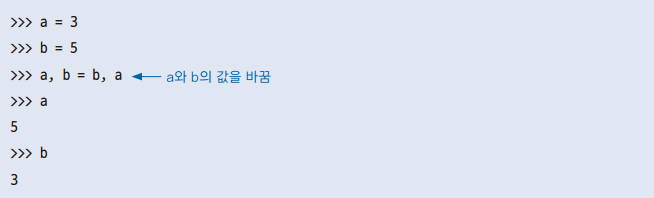 a,b=b,a 문장을 수행하면 두 변수가 가리키는 값이 바뀐다.