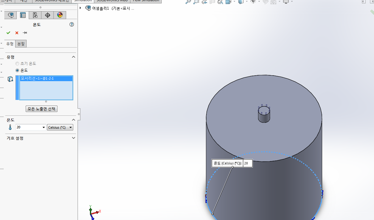 하단부 아랫면의 온도를 20도로 설정해준다. 여기서 온도의 단위를 꼭 Celsius로 바꾸어주어야 한다.