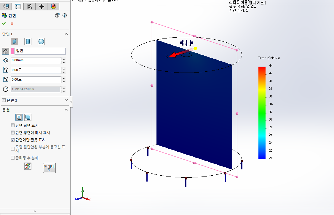여기서 '열 하중' 디렉토리를 우클릭하여 온도,열량 등을 조정할 수 있다.