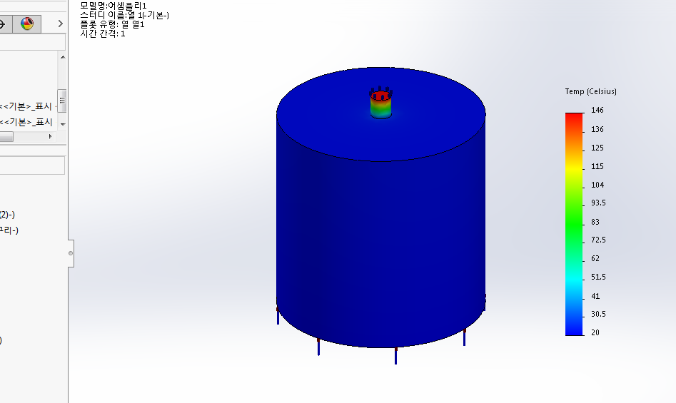 메시 시뮬레이션 결과 화면이다. 온도 비교는 나중에,,