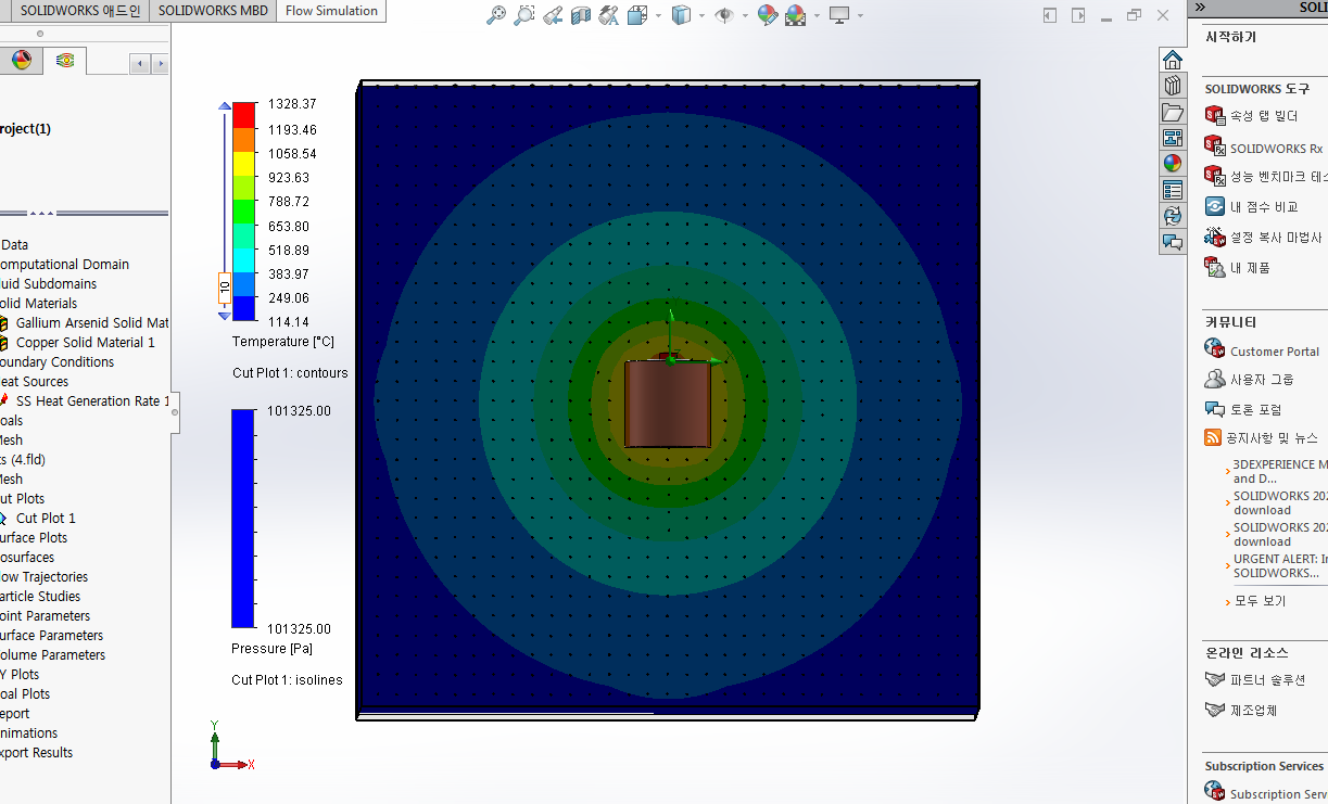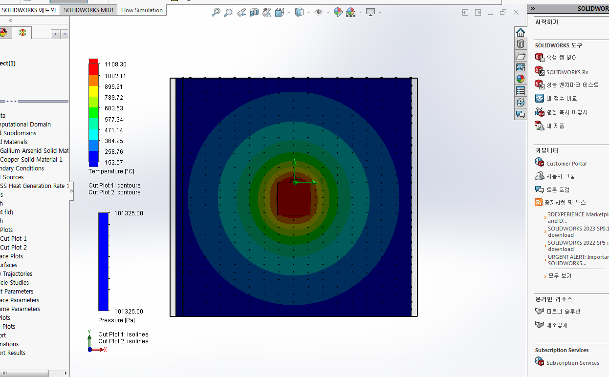 이번에는 일반 simulation이 아닌 flow simulation으로 열해석을 진행하였다.