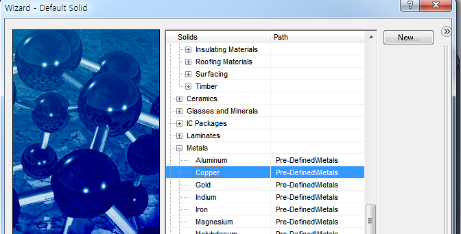 solid materials directory를 우클릭하여 재질을 insert해주었다.