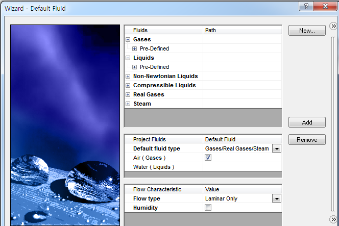 default fluid 에서 air를 선택하기 위해 fluid type을 gases로 해주었다.