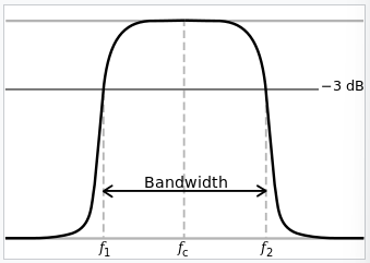 : 특정한 기능을 수행할 수 있는 주파수의 범위로, 헤르츠 단위로 측정된다. 문맥에 따라 통과대역 대역폭 (passband bandwidth)로 부를 수 있다. 정보이론, 무선 통신, 신호 처리 등 여러 분야에서 중요한 개념으로 다룬다.