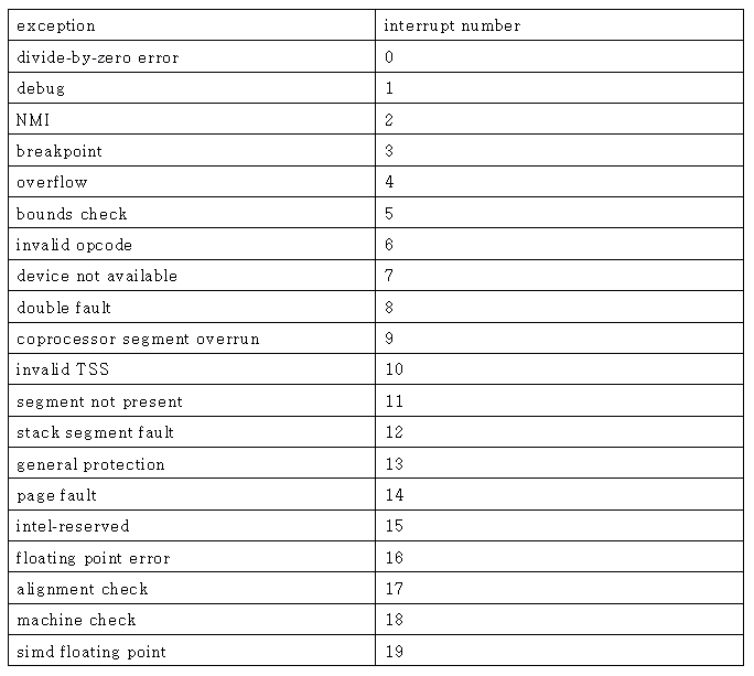 6-1) What are the interrupt numbers for divide-by-zero exception, keyboard interrupt, and "read" system call?