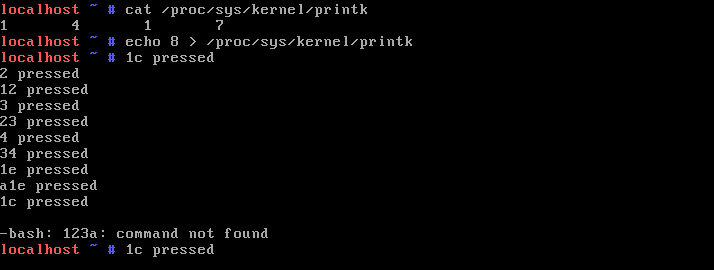 Above will set console log level to 8 which means all printk() message will appear on the console from now on. (Note the files in /proc file system are not real files. They are generated dynamically when needed.)