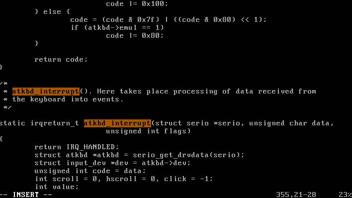 다음의 과정을 통해 My linux2안에서 atkbd_interrupt 에 대한 handle file인 atkbd.c를 수정하고
