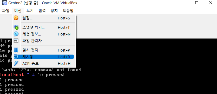 console log level에 따른 출력 여부를 확인한 이후 다른 linux(본인은 gentoo로 들어갔음)로 들어가서