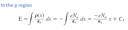 C1은 다음과 같이 나온다. 이를 통해 최종적으로 p region에서의 E-field를 계산하는 식은 아래와 같이 나온다.