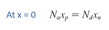 위와 같이 "접합면으로부터의 거리와 해당 region이 농도의 곱이 서로 같다"는 의미의 식으로 정리된다.