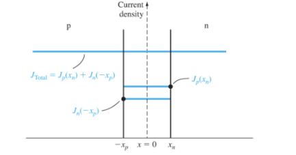 ( pn junction에서 전체 전류는 일정하다.) - 전자와 정공 각각의 전류는 pn 구조내에서 위치에 따라 다르다.(위치에 따른 함수로 이루어져 있음.) - 전자와 정공의 각각의 전류는 depletion 영역에서는 일정하다.