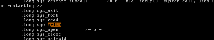 파일 내에서 "/찾고있는text"+enter를 통해 각 system call의 number를 찾는다.