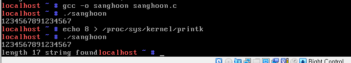 8) Change the kernel such that it prints "length 17 string found" for each printf(s) when the length of s is 17.