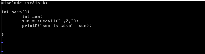 sum = syscall(31, 4, 9); // suppose 31 is an empty entry in sys_call_table