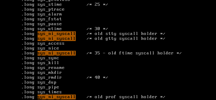 sys_ni_syscall 이라는 system call은 파일 내에 여러개 존재한다.